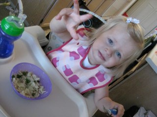 The recipe was simple enough: boil a chicken, cook the noodles in the broth, shred the chicken, add it to the noodles and ta-da! You’ve got Chicken & Noodles. A simple, kid-friendly dish that fit right into my current plan for getting Addie to eat more than just chicken nuggets or PB&J. Yesterday was the perfect day to do it, too, since we were up early and didn’t have plans to leave the house. (Simple as the dish is, it takes a bit of time.)