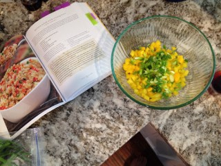 Bring 1 cup quinoa to a boil in 2 cups water. Once boiling, reduce heat and let simmer for 15 minutes. Let rest for 5 minutes, then fluff with a fork. Refrigerate until ready to make the salad. Meanwhile, dice 1 yellow bell pepper and slice three scallions. (I cut mine on the bias because I think it feels fancy, but do it however you prefer.) Toss the veggies with the cooked and cooled quinoa. Add the red wine vinegar and olive oil, and season with salt and pepper. Start with about 1/4 tsp course salt to begin with, and add more to your liking.
