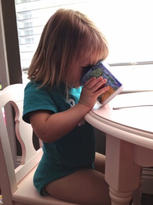 I made the girls their cashew butter and jelly sandwiches and settled them at the table to eat while I unloaded the rest of the groceries. I was distracted and I didn’t notice until at least five minutes later, maybe longer, after she had already eaten at least half of her sandwich.