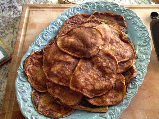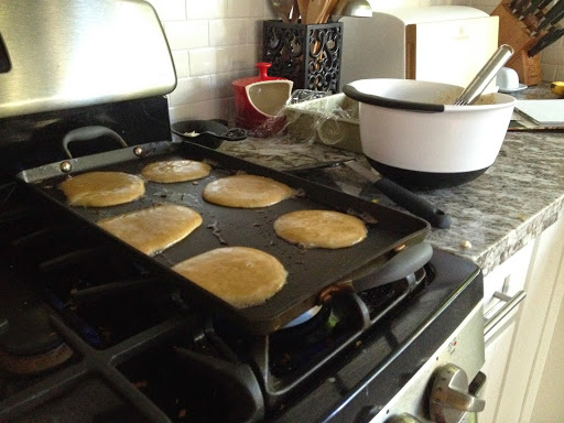 Heat up your griddle and plunk a knob of coconut oil on top, about a half tablespoon per batch or so.